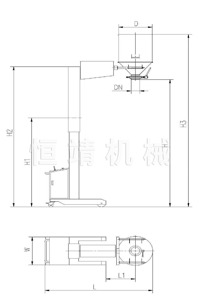 5、可升降立柱,既易于进出房门,又适应1.8米至2.5米加料高度的设备使用。