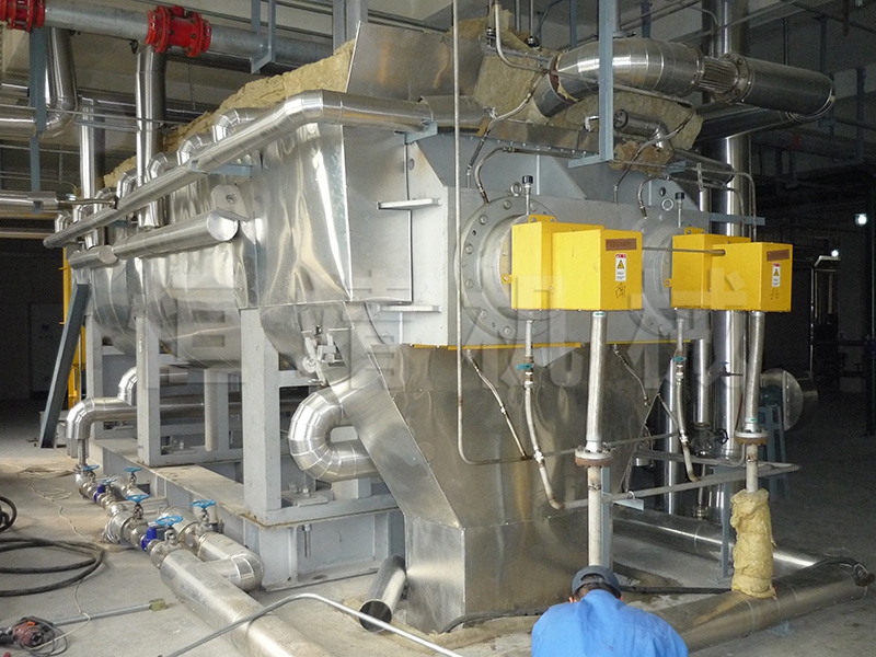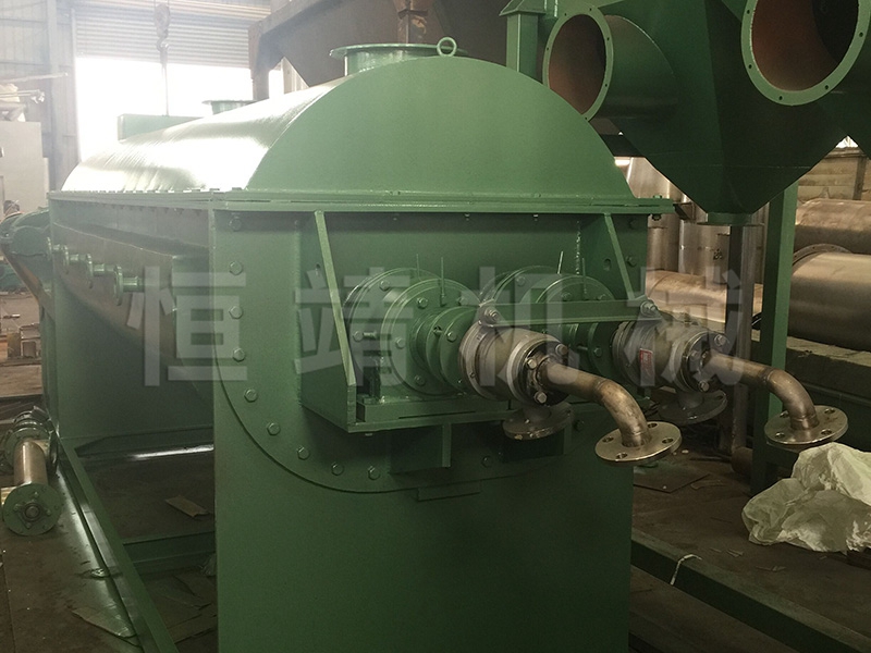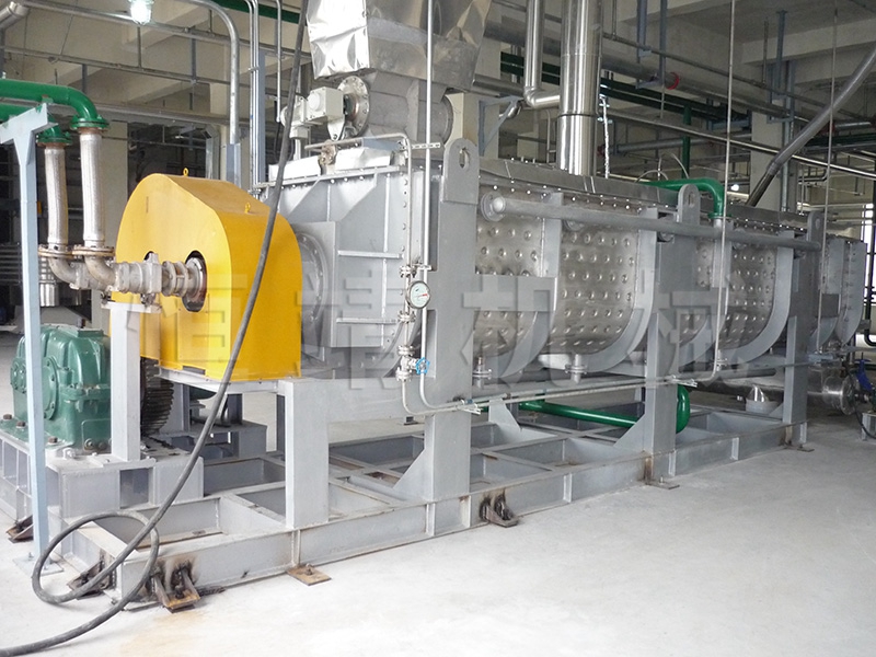 污泥烘干机可以一次性将90%含水量的物料烘干至成品。针对污泥烘干过程中易结团结块的特性,改变了一般单通道干燥机的料板结构形式,采用了组合式自清理装置,极大地扩展了单通道干燥机应用范围,不仅可以干燥各类污泥,还可以干燥各种高粘度物料。