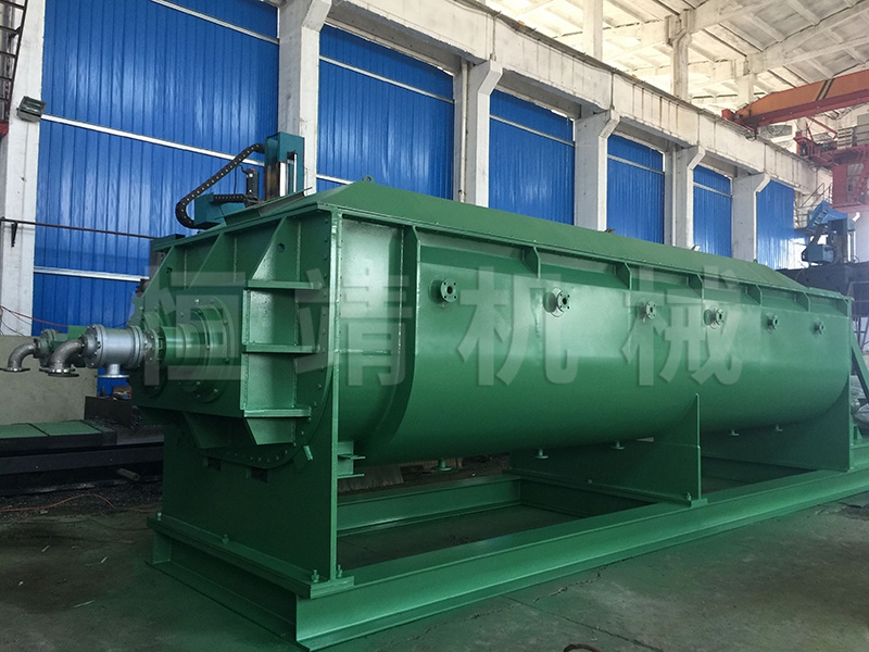 空心轴上密集排列着楔型中空浆叶,热介质经空心轴流经浆叶。单位有效容积内传热面积很大,热介质温度从-40℃到320℃,可以是水蒸汽,也可以是液体型:如热水、导热油等。间接传导加热,没有携带空气带走热量,热量均用来加热物料。热量损失仅为通过器体保温层向环境的散热。楔型浆叶传热面具有自清洁功能。物料颗粒与楔型面的相对运动产生洗刷作用,能够洗刷掉楔型面上附着物料,使运转中一直保持着清洁的传热面。浆叶干燥机的壳体为Ω型,壳体内一般安排二到四根空心搅拌轴。壳体有密封端盖与上盖,防止物料粉尘外泄而充分发挥作用。