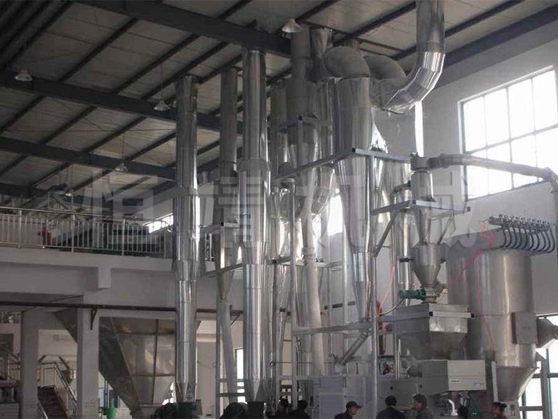 这类物料具有特殊性:比重轻,加料难,易燃,易爆。针对此情况,我公司技术部门开发研制的新型气流干燥机,在原气流干燥机的基础上改进了加料形式,解决了“架桥”现象。创新改进了旋风分离器,解决了物料翻滚不出料的现象。系统集成,控制先进,超温报警连锁关闭热源,有效解决了温度过高引起的燃烧爆炸问题。